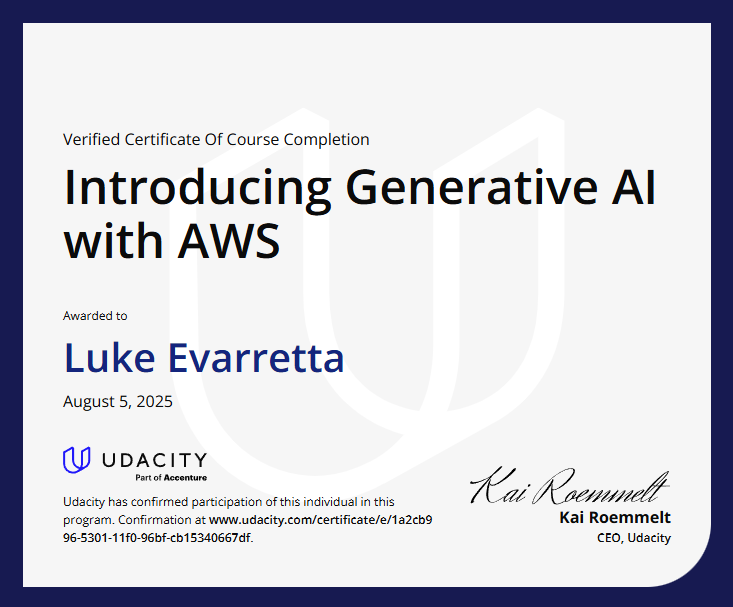 I earned a badge for mastering generative AI fundamentals, including its history, real-world applications, and ethical impacts. Using AWS tools, I explored AI and machine learning basics, large language models, and prompt engineering. This program strengthened my understanding of AI vs. ML and responsible AI use, helping me apply these skills in practical scenarios.