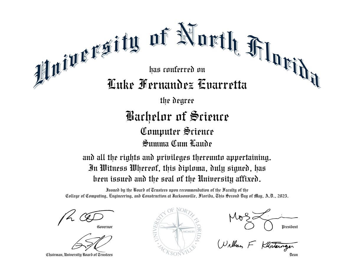 evarretta.luke@gmail.com ResumeI am a recent graduate with a Bachelor of Science in Computer Science, eager to launch my career in the tech industry. Throughout my academic journey,